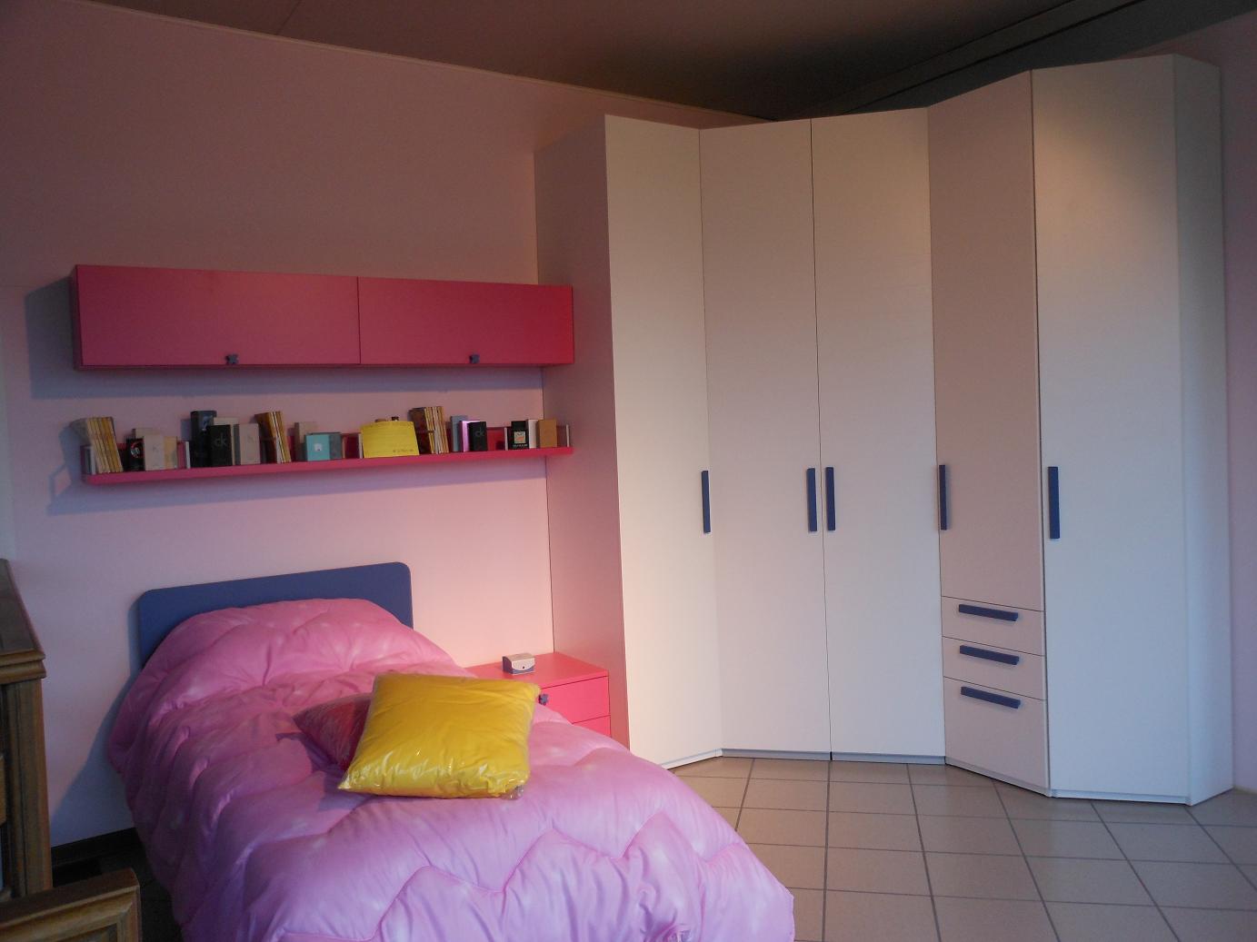 Cameretta completa di letto, armadio ad angolo con cabina, tutto bianco, con...