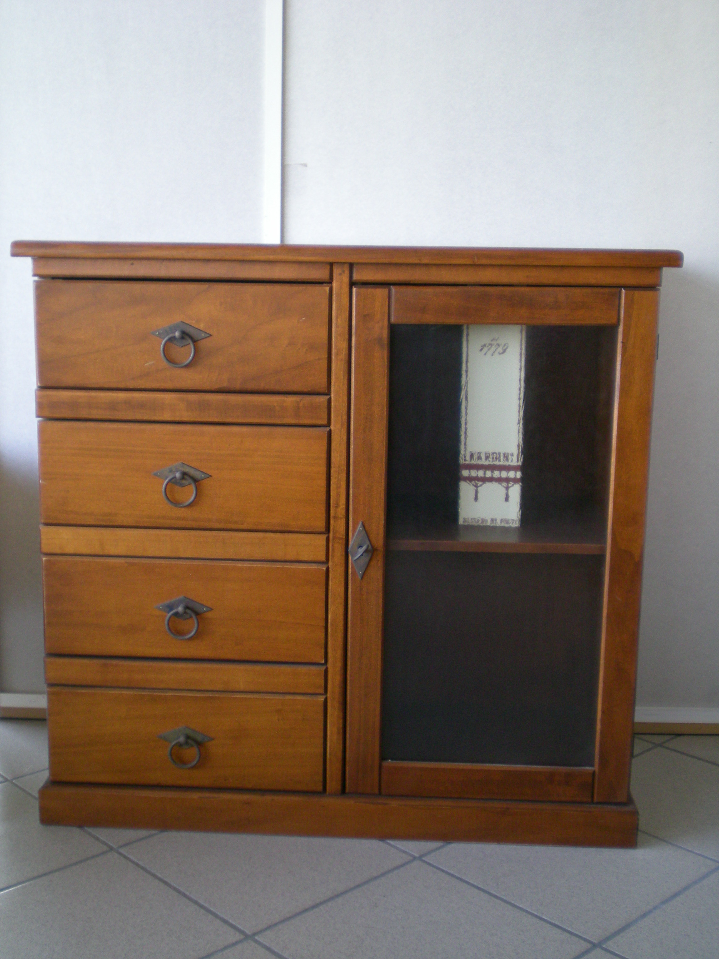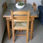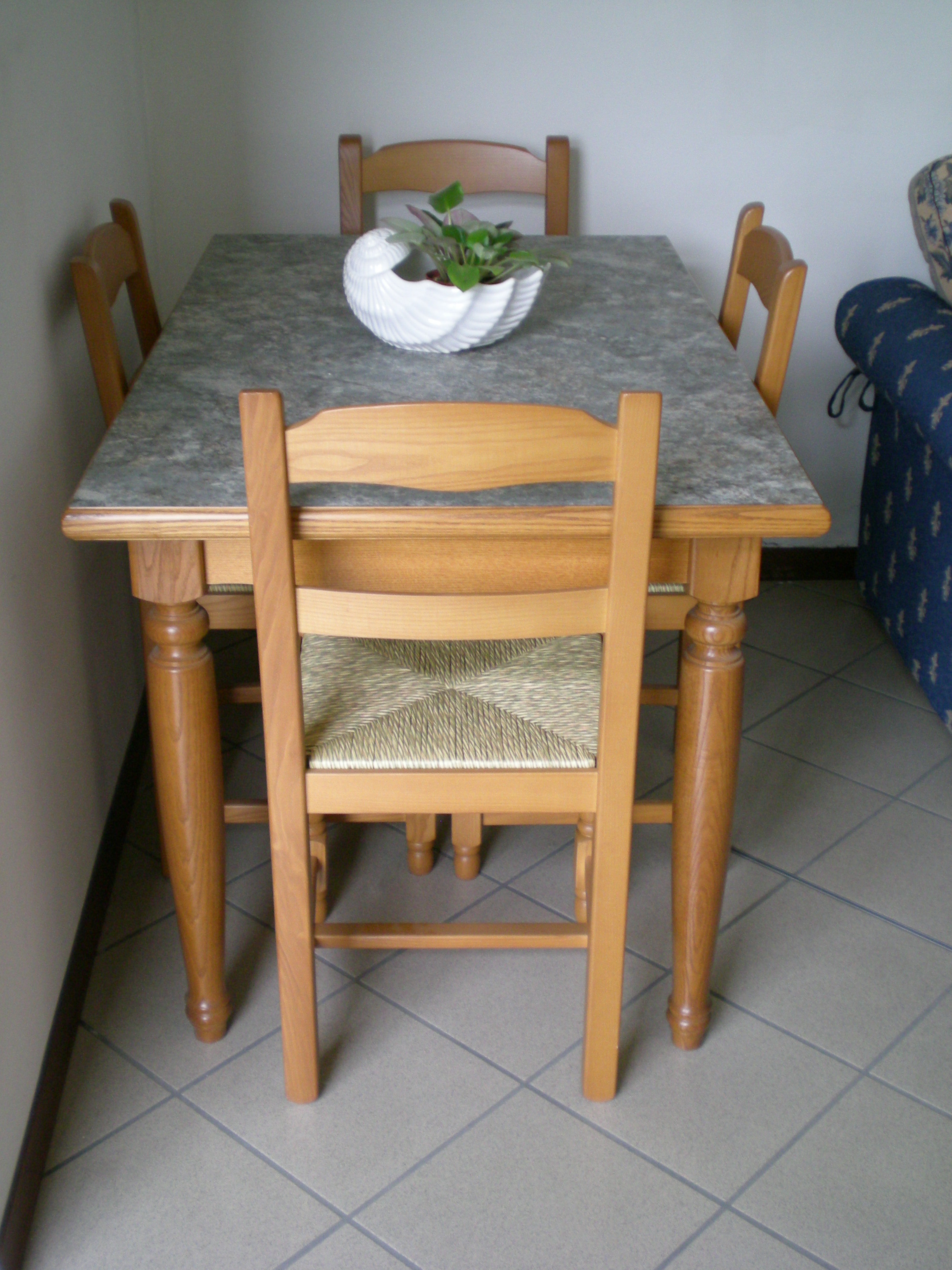 Tavolo rettangolare struttura legno castagno, piano finto granito. Completo con...