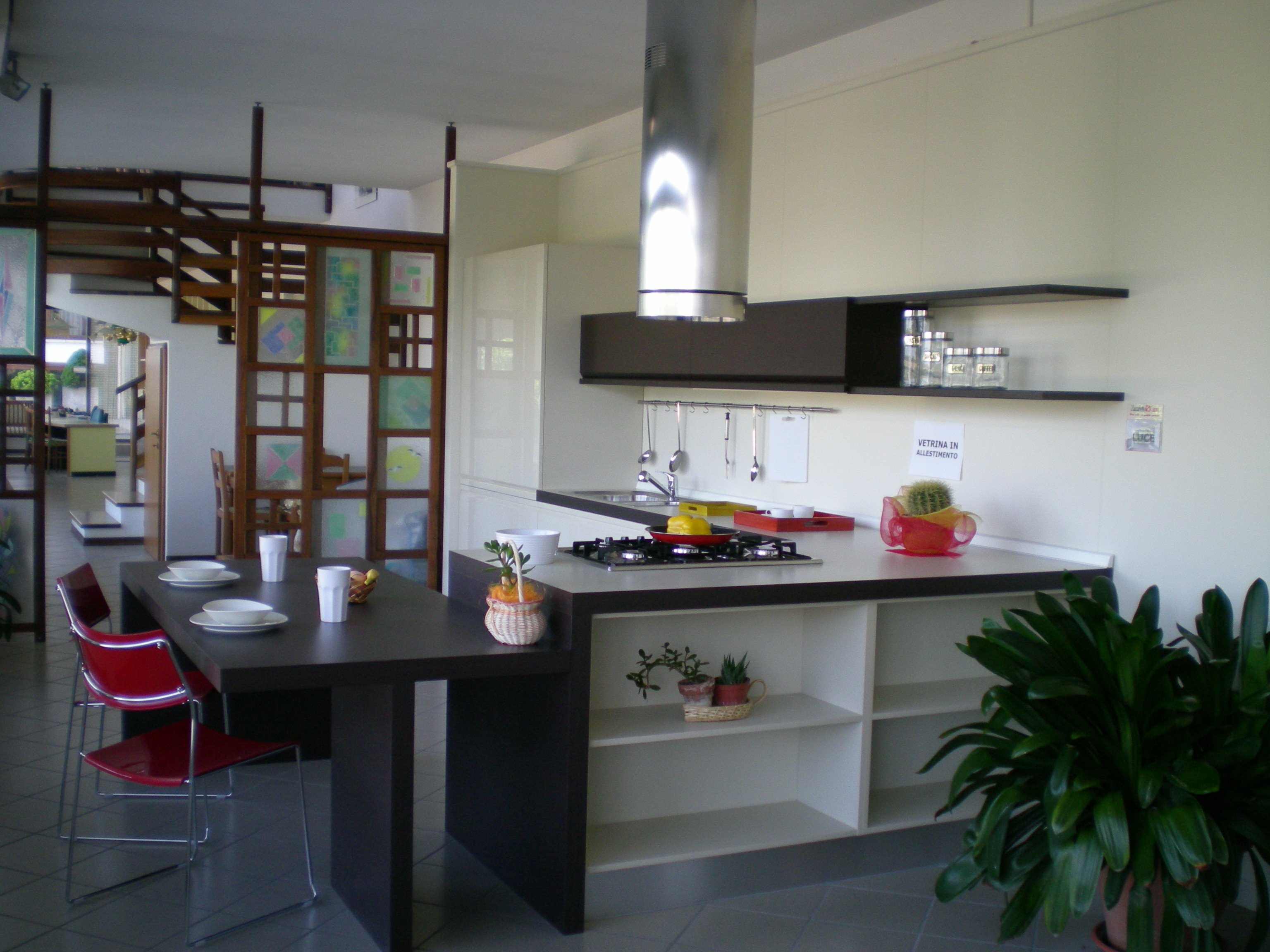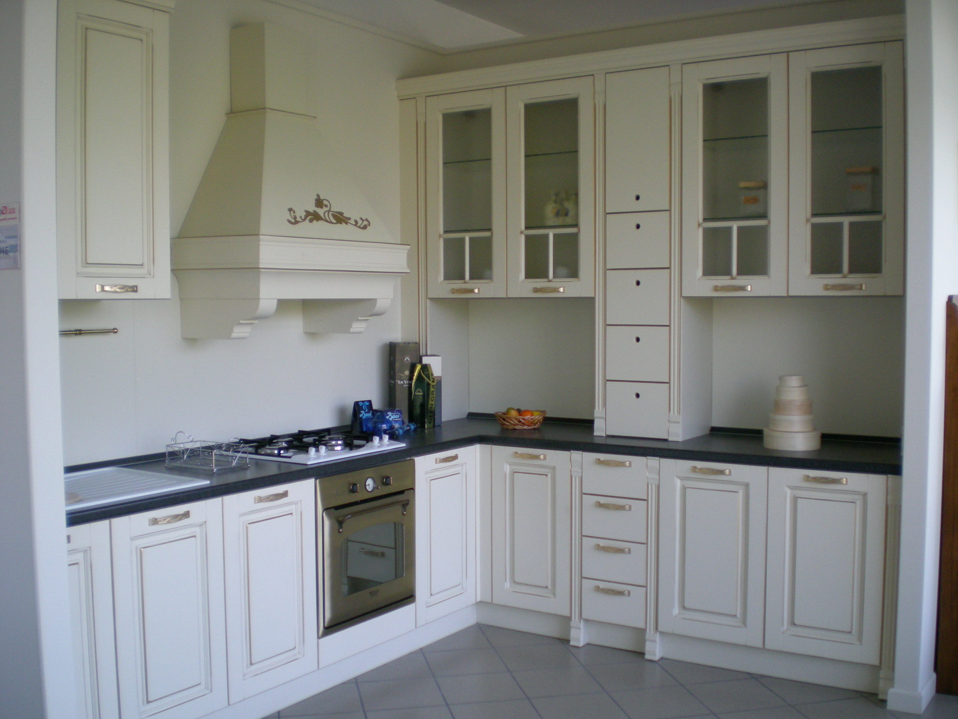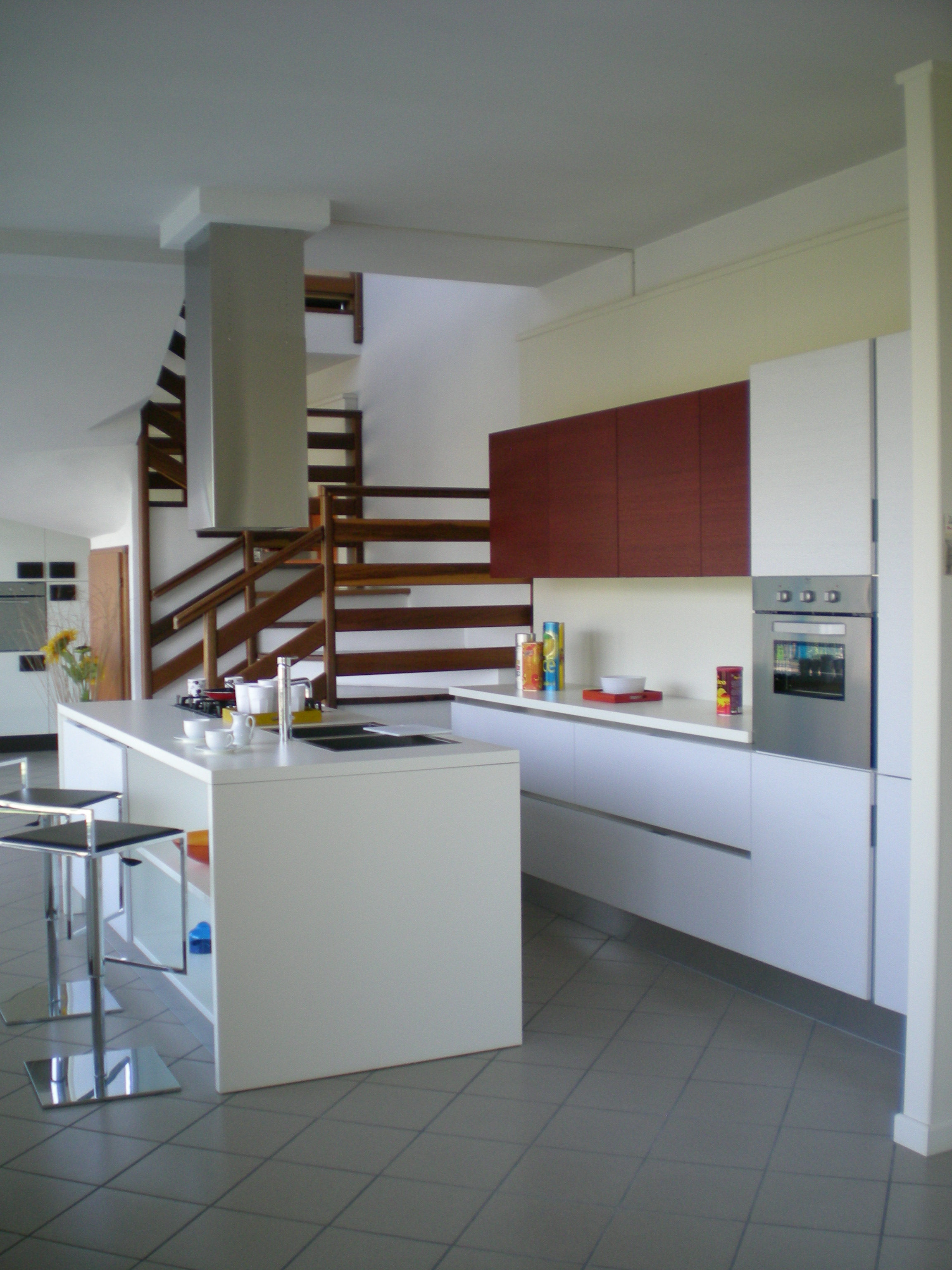 Cucina struttura bianca, ante bianche pennellate e 4 ante pensili rosso...