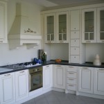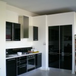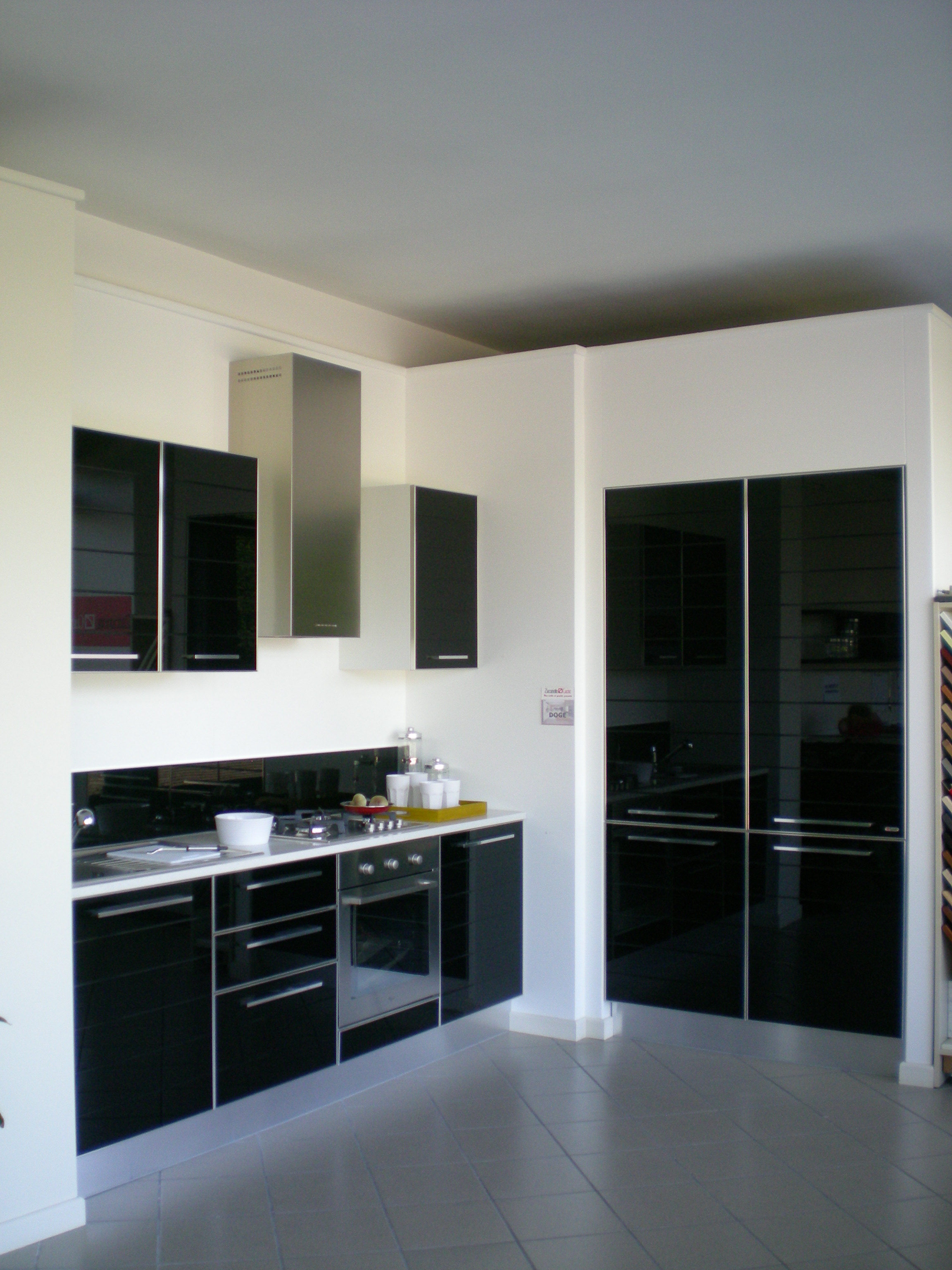 Cucina struttura bianca, ante in vetro dogato nero e piano cucina in...