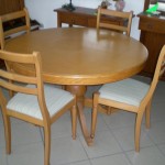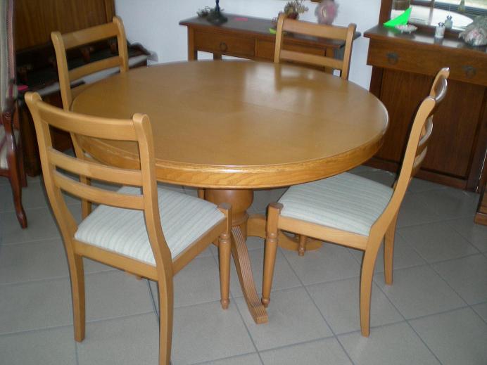 Tavolo rotondo in legno rovere con n. 4 sedie in legno e seduta imbottita.